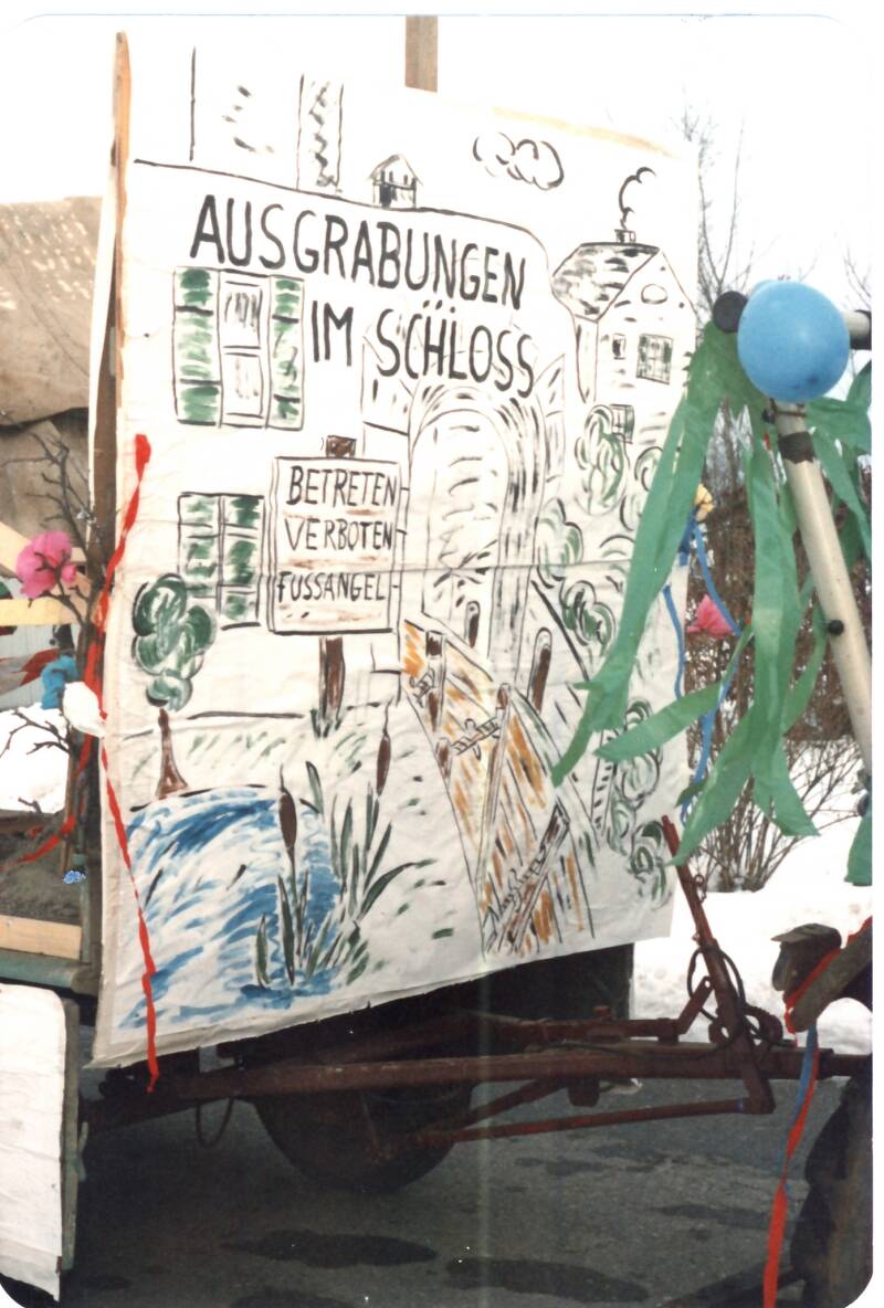 Aus aktuellem Anlasse - heute als Foto(s) des Monats März 2025 Bilder vom Faschingsumzug 1983. Archäologische Ausgrabungen im Schloss gaben wohl Anlass zum damaligen "Derblecken der Boandlgraber".
