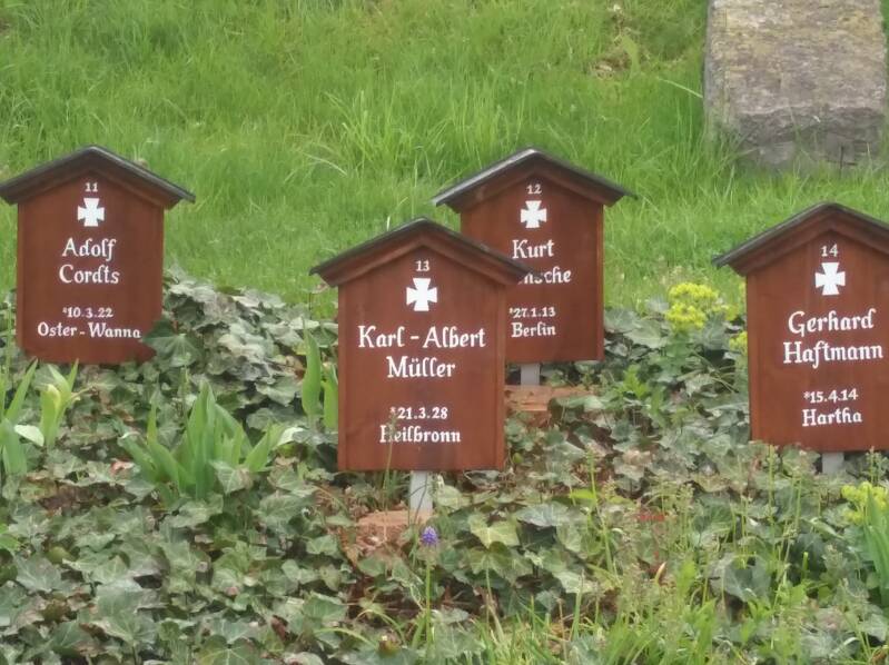 | Obergefr. | HAFFMANN, Gerhard | 15.04.1914 | Hartha / Sachsen | Grab 14 |