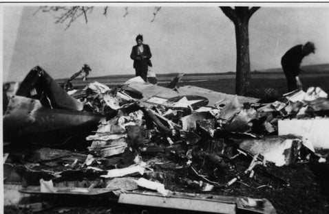 Die Reste der Maschine müssen noch einige Zeit sichtbar gewesen sein. Der 2014 verstorbene Franz Weisheit aus Zell a. d. Speck berichtete dem Autor gegenüber, wie er nach dem Krieg als Schuljunge auf dem Weg zum Bahnhof an den Flugzeugtrümmern vorbeikam. Westlich von Adelschlag gibt es eine Stelle, welche als "Fliegerloch" bezeichnet wird. Das legt den Verdacht nahe, dass die Reste des Flugzeugwtacks darin "entsorgt" wurden. Einige Teile wie das Spornrad waren 2005 noch im Besitzt eines ortsansässigen Landwirts.